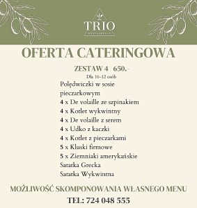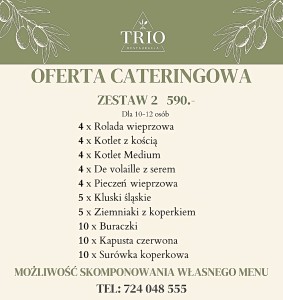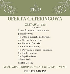 Istnieje możliwość osobistego odbioru zamówienia w Restauracji TRIO, ul. Pstrążka 1, 44-285 Rzuchów